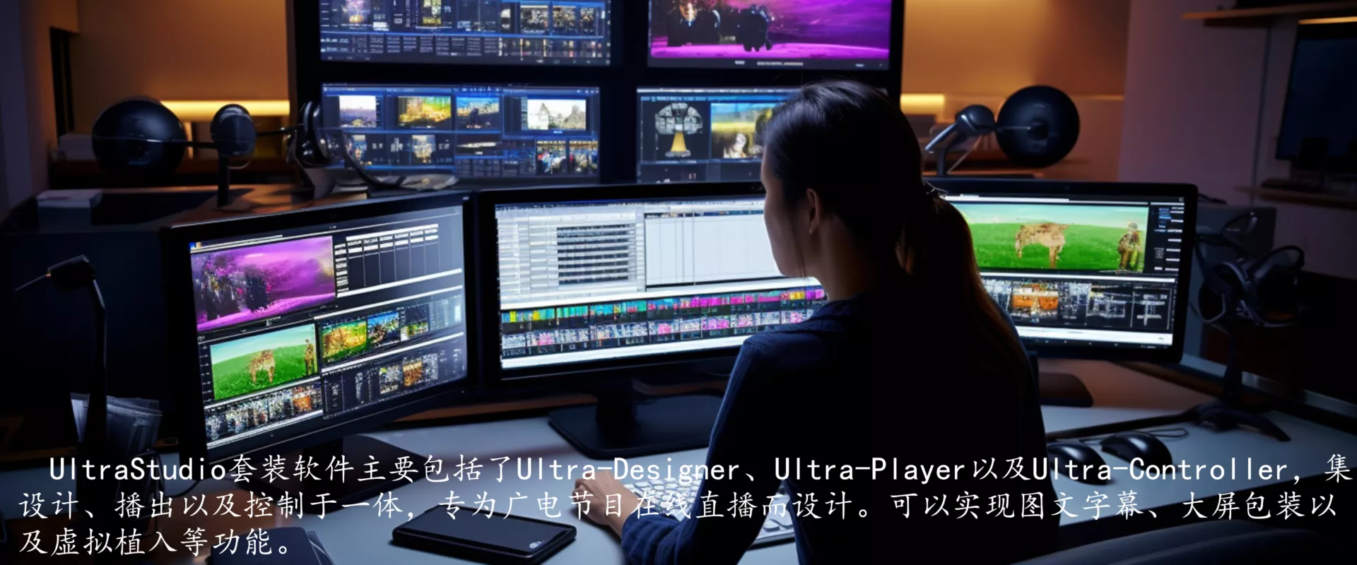UltraStudio是北京零像素科技有限公司基于自主研发引擎XEngine打造的专业级图文系统,专为直播而设计。可以广泛应用于广电、教育、气象、访谈、脱口秀节目和线上教学,以及新闻、体育、财经等多种录播及直播客户群体>>。